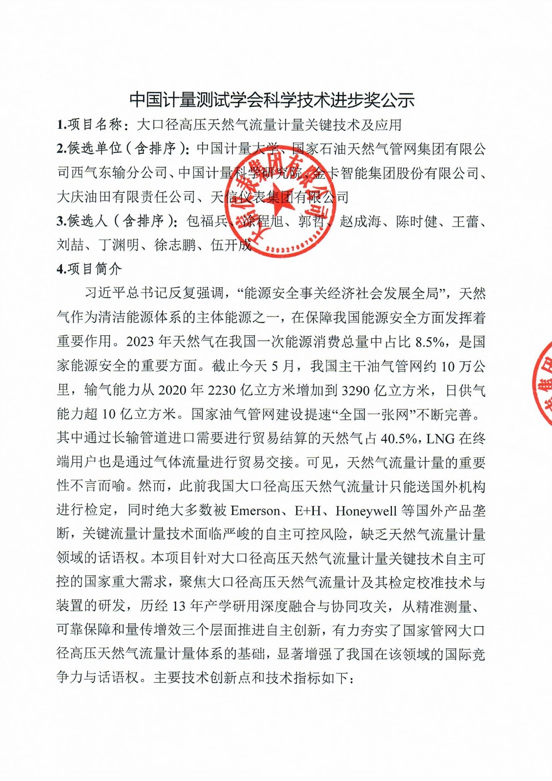 中国计量测试学会科学技术进步奖公示